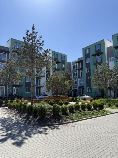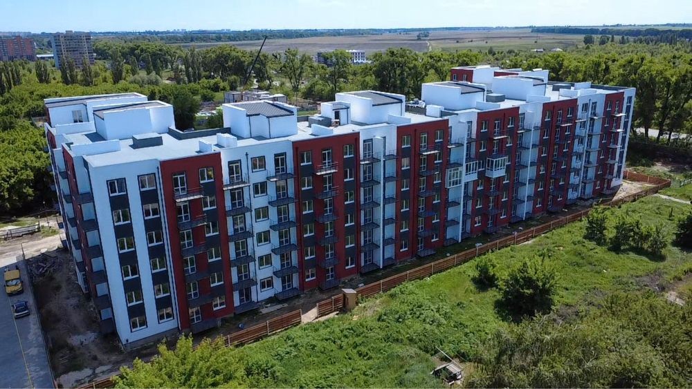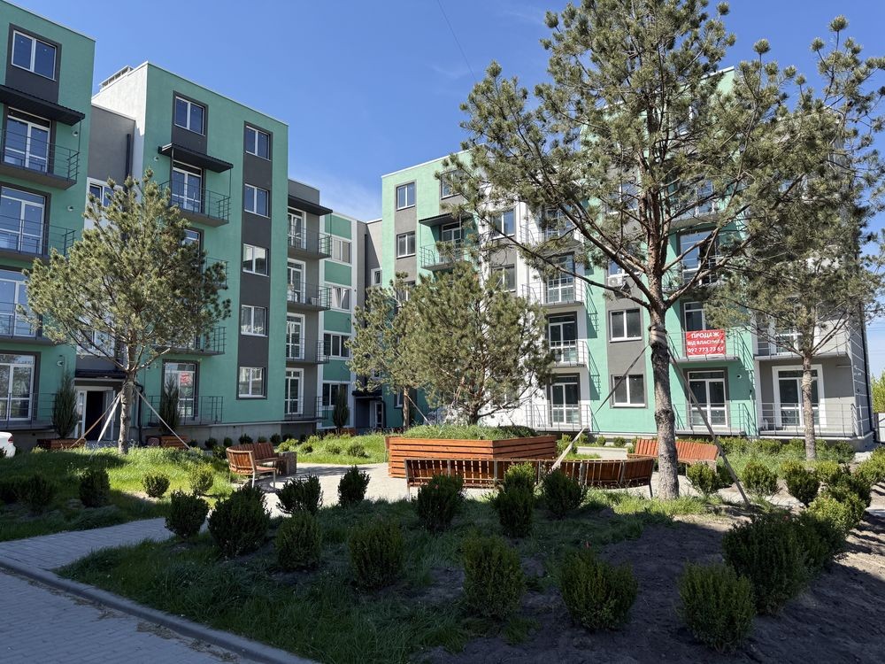 Сучасна архітектура, яскраві фасади, закрита територія. Пішохідні двори, парк у центрі комплексу з літнім кафе та зоною відпочинку брукованою паркетною дошкою з підвісними гойдалками-коконами.