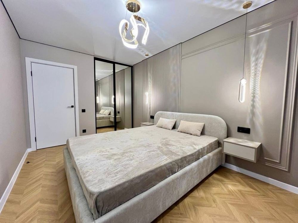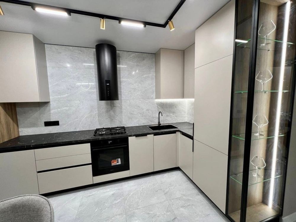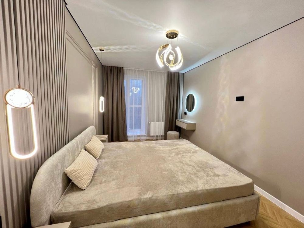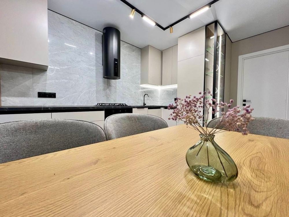 Дві окремі кімнати, гардероб, відпочинкова зона, простора кухня з виходом на засклену лоджію;