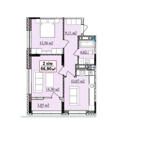 • Загальна площа 56.9 м2