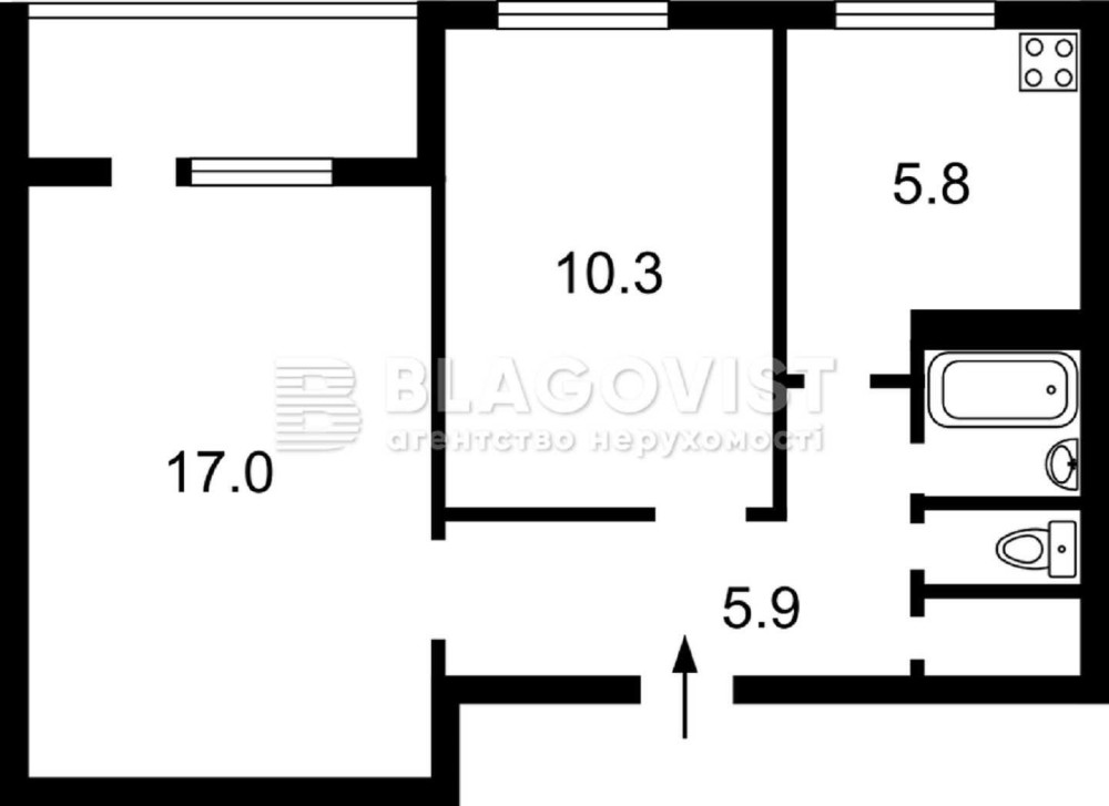 • Площа кухні 5.8 м2