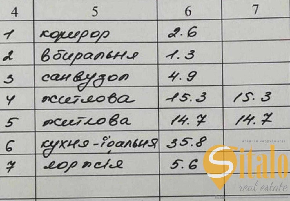 Загальна площа 80 м.кв., житлова 30 м.кв., кухня-вітальня 35 м.кв.