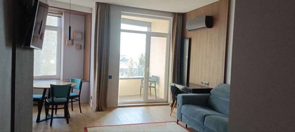 Студія загальною площею 40 кв.м., балкон, гардероб, панорамні вікна, сучасна кухня та ванна кімната. Індивідуально виконані меблі: шкафи, тумби, диван з повноцінним ліжком та нішею. У санвузлі наявний душ. 8 поверх, вид на вулицю Січових Стрільців та на Північний міст. Житловий комплекс А52. Новий ремонт. У квартирі виконаний якісний ремонт, хороші меблі та якісна техніка.