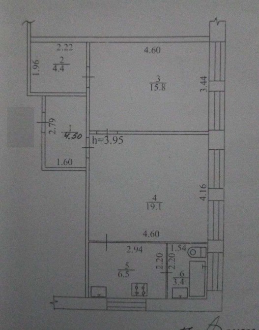 • Площа кухні 6.5 м2