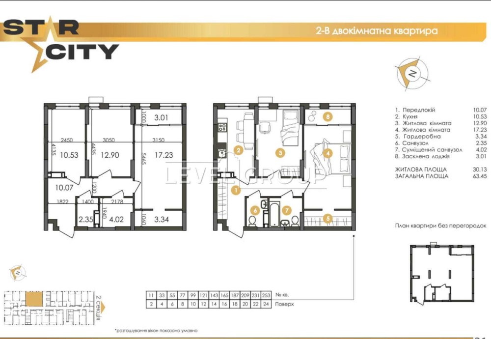 Простора 2-кімнатна квартира площею 63.45 м² у сучасному ЖК Star City.