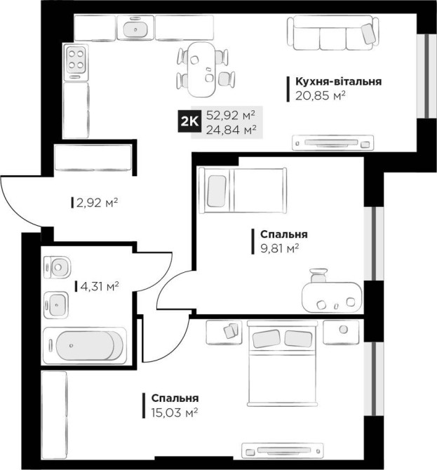 • Загальна площа 52.92 м2