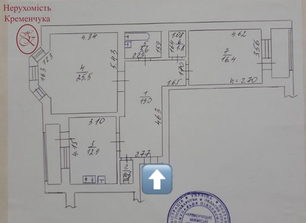 • Висота стелі — 2,7 м