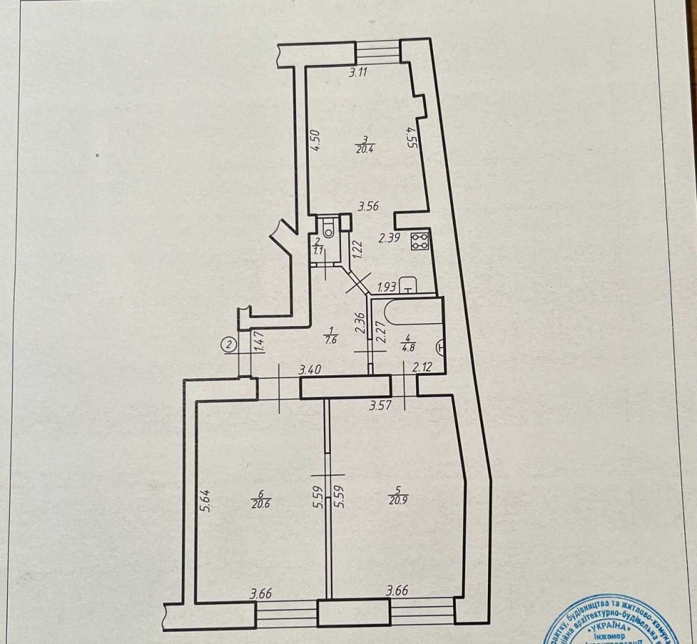 Загальна площа кв 75 м2, кв розташована в самому центрі Івано-франківська