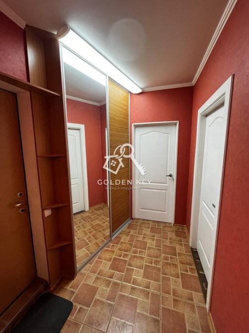 Підлога: у ванній кімнаті, коридорі та на кухні — плитка, у кімнатах — лінолеум. У спальні облаштована окрема гардеробна з освітленням. Якісні міжкімнатні двері. Кухня-студія.