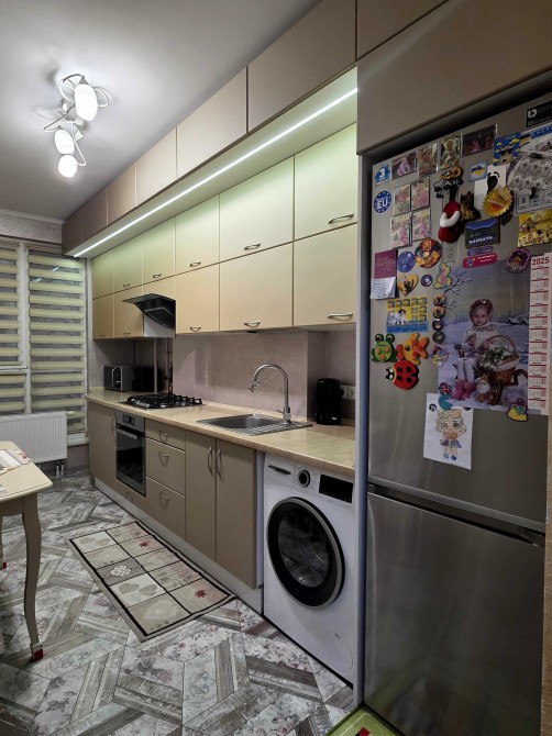 У квартирі залишаються всі меблі (ДСП, дуб) та побутова техніка: газова варильна поверхня, витяжка, електрична духова шафа, холодильник, мікрохвильова піч, пральна машина, 2 стабілізатори напруги. Потужної моделі кондиціонер Cooper Hunter. Відеодомофон. Wi-Fi роутер. Зарядна станція.