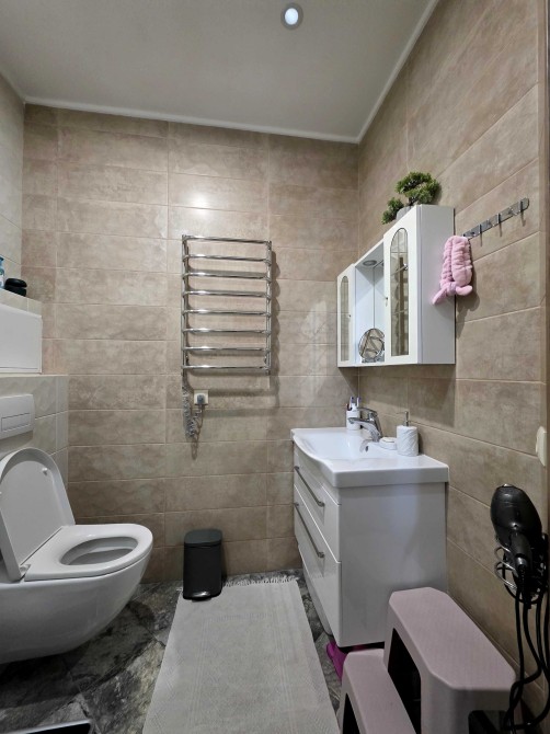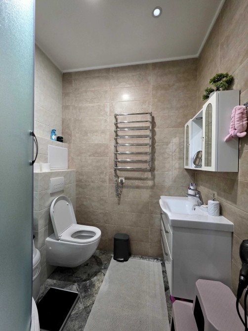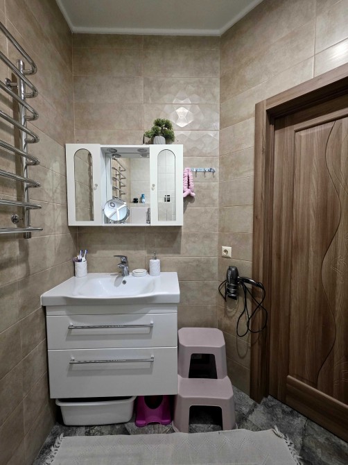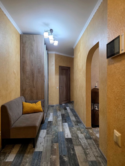 Ремонт виконувався з якісних дороговартісних матеріалів, в кухні та коридорі стіни оброблені декоративною штукатуркою, на підлозі – ламінат та плитка. Тепла водяна підлога в коридорі та ванній кімнаті.