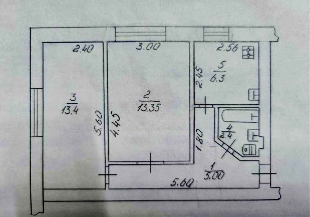 Загальною площею 44.2 кв. м ( кімнати 13.4 кв. м та 13.35 кв. м ), коридор 6.3 кв.м, с/у суміжний 2.4 кв. м. Кімнати окремі.