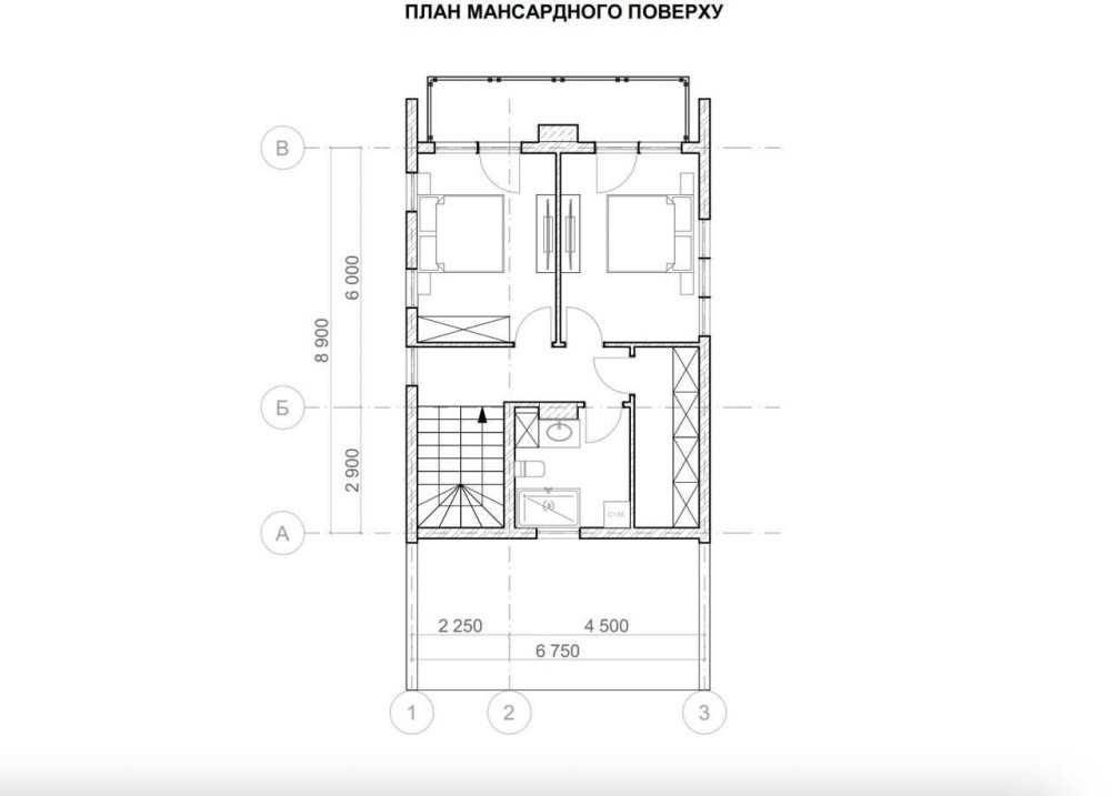Санвузол, гардеробна кімната, та дві спальні ( за нашим проектом), але якщо Ви забажаєте реалізувати свої дизайнерські здібності, то ми із задоволенням вибудуємо стіни, по Вашому баченню і плануванню)