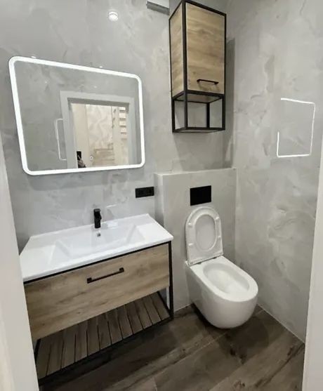 На першому поверсі тепла підлога, на другому - дорогий ламінат у стилі «деревʼяне полотно».