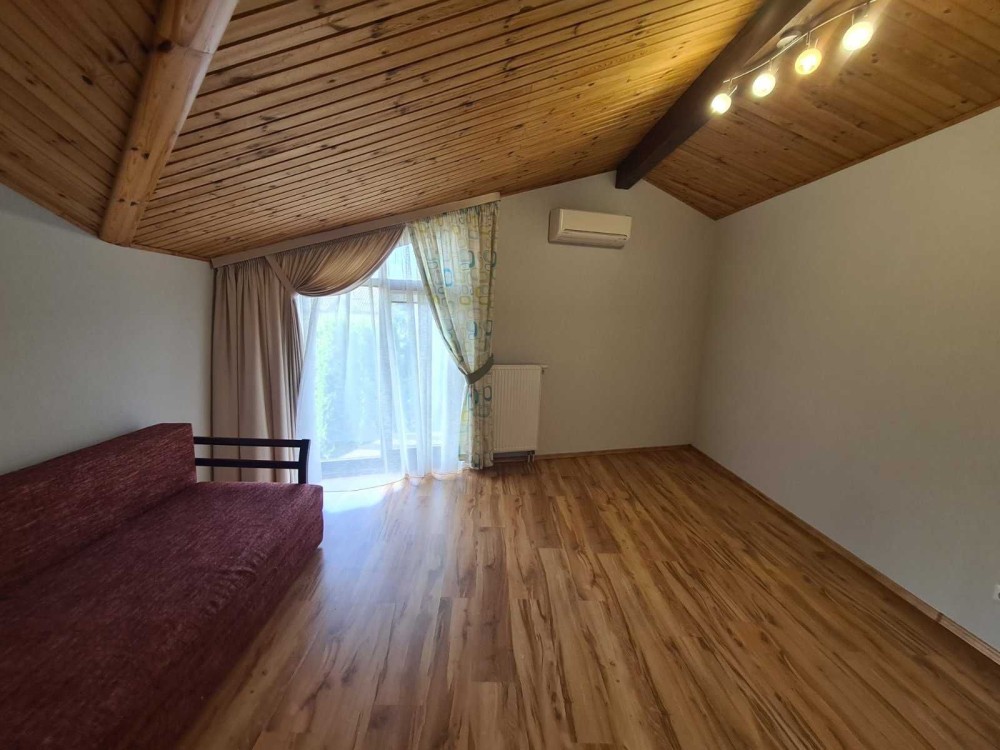 У будинку 3 спальні (20 кв. м, 21 кв. м та 15 кв. м), оснащені інверторними кондиціонерами, кухня-студіо-вітальня (41 кв. м), 2 санвузли, вбиральня. Індивідуальне опалення (двоконтурний газовий котел), тепла підлога по всьому першому поверху, оптико-волоконний інтернет, супутникове ТБ, домофон. У гостьовому будинку є кімната відпочинку, сауна, санвузол, а також додаткове приміщення для господарських потреб.