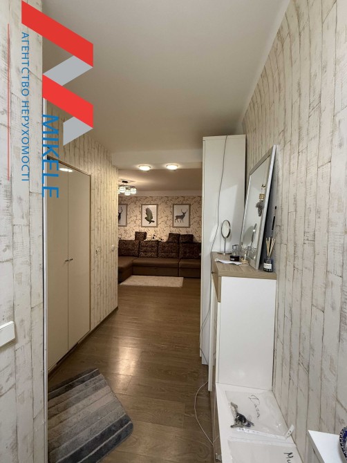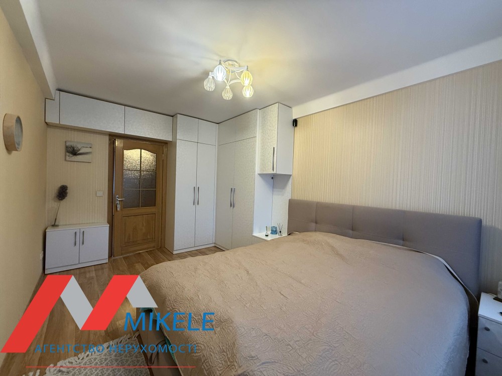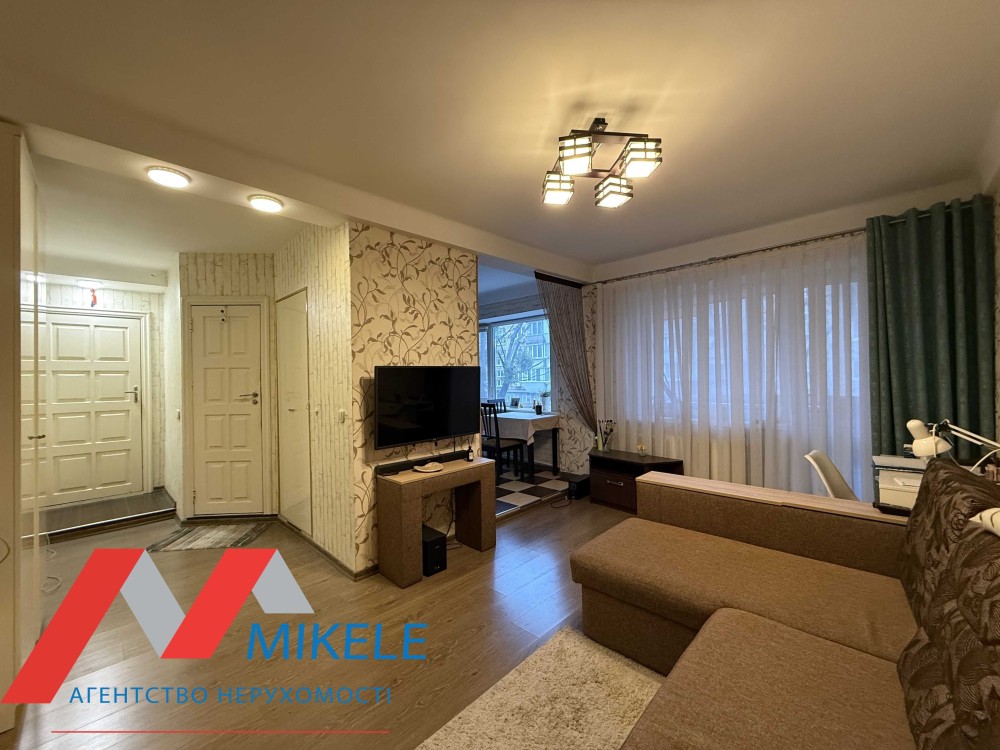 Затребуване планування: об’єднана кухня-вітальня з виходом на засклений балкон, повноцінна окрема кімната, сумісний санвузол, в коридорі встановлена шафа.
