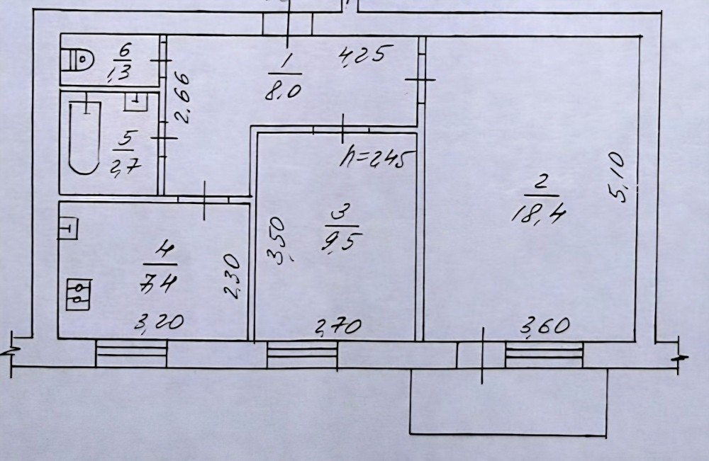 - висота стелі 2,45 м.