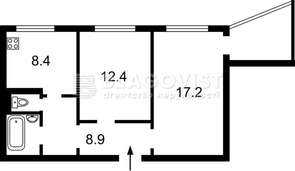 • Площа кухні 8.5 м2