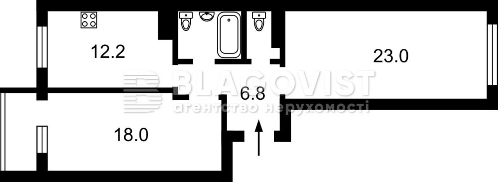• Площа кухні 12.2 м2