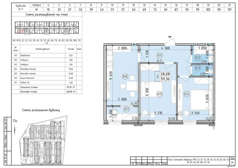 • Загальна площа 59.36 м2
