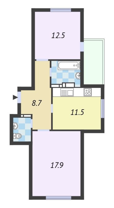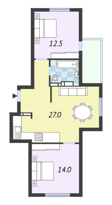 - Легко перепланується в «євротрійку» - 2 спальні та кухня-вітальня 27 м