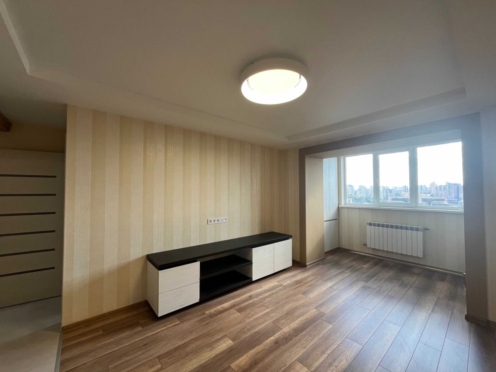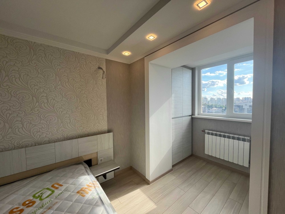 Вдале планування : простора вітальня 21кв.м, затишна спальня 13 кв.м., кухня 9 кв.м., сумісний санвузол, невелика гардеробна кімната. Зроблений капітальний ремонт з заміною всіх комунікаційних мереж. Спальня повністю укомплектована меблями, у вітальні та коридорі вбудовані шафи та полички, встановлена кухня з газовою поверхнею. Все абсолютно нове.