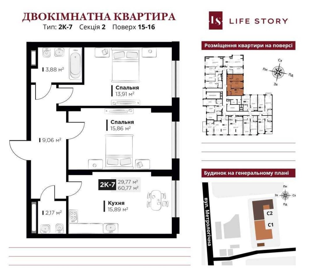 • Загальна площа 60.77 м2
