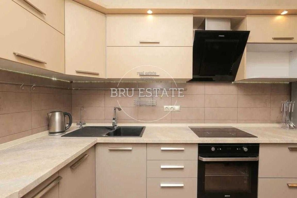 Кухня повністю укомплектована сучасною технікою: система фільтрації води, подрібнювач харчових відходів, посудомийна машина, варильна поверхня, духова шафа, витяжка, холодильник, мікрохвильова піч.