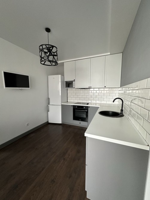 В квартирі є: вбудована шафа-купе, ліжко з нішами, кухня, техніка (холодильник, духова шафа, варильна поверхня, витяжка, бойлер, прально-сушильна машина, 2 телевізори) та ін.