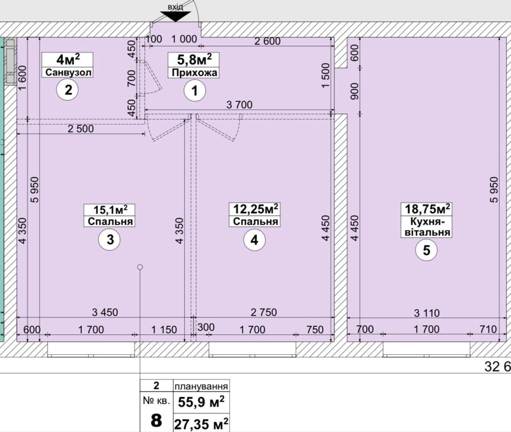 Загальна площа- 55,9м2