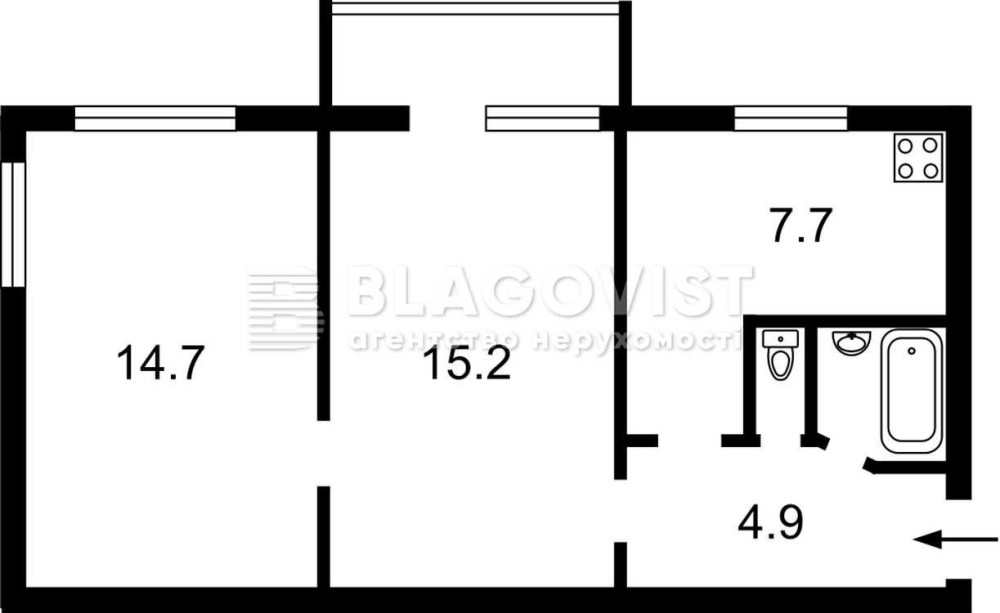 • Площа кухні 7.7 м2