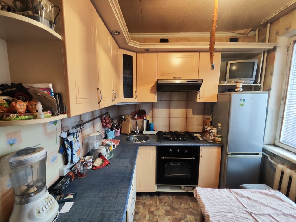 Четвертий поверх п'ятиповерхового будинку. Велика, простора квартира , все окремо, кухня 9 кв. м., житловий стан, з меблями. Вільний продаж. Торг присутній.