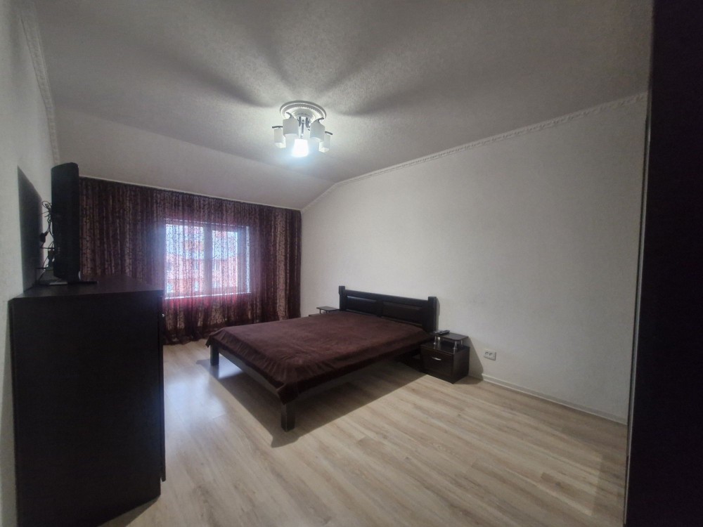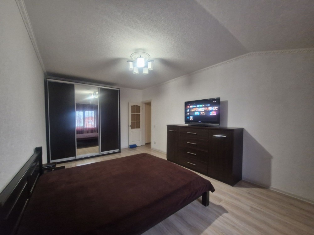 У спальні велике двоспальне ліжко, шафа-купе, комод та телевізор. Встановлений кондиціонер, завдяки якому в квартирі завжди комфортно.