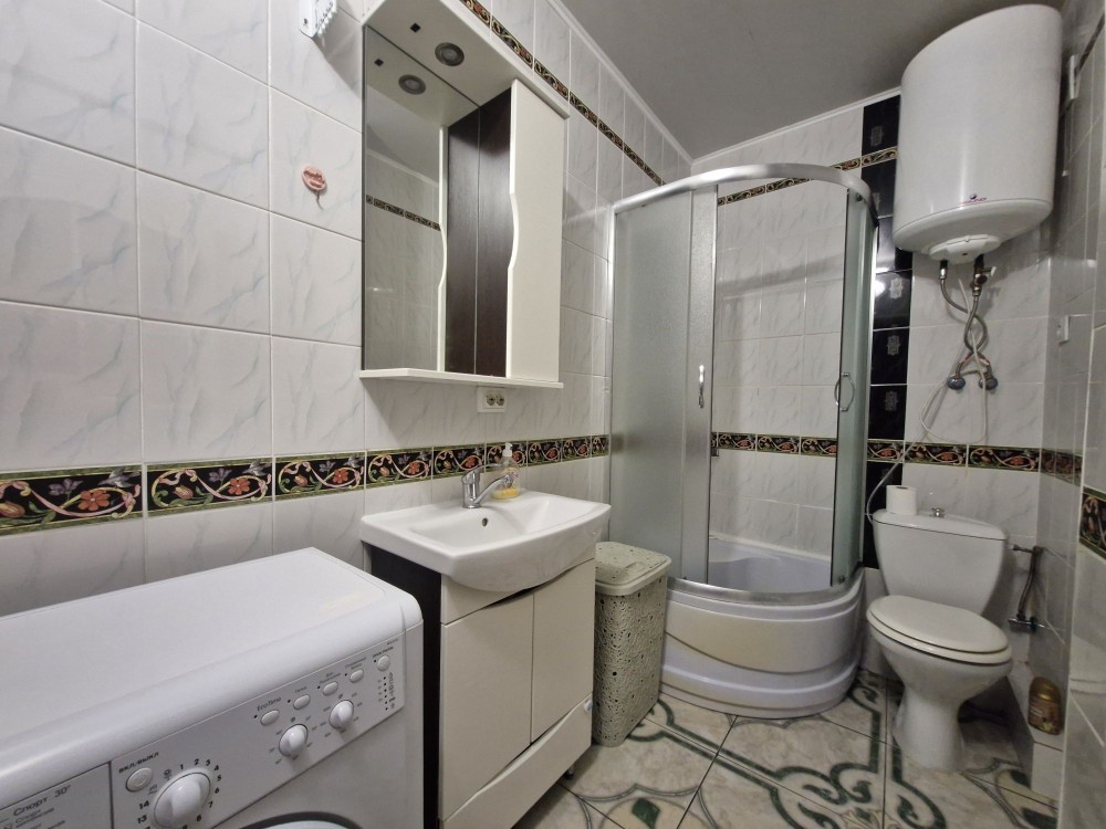 Сучасний санвузол обладнаний душовою кабіною та пральною машиною, повністю укомплектований для щоденного користування.