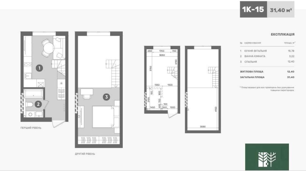 • Загальна площа: 31,4 м²