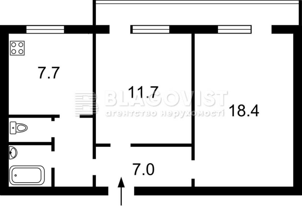 • Площа кухні 7.7 м2