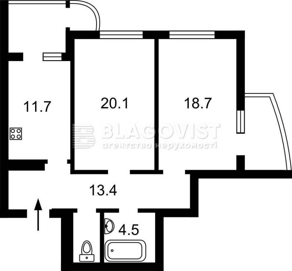 • Площа кухні 11.7 м2