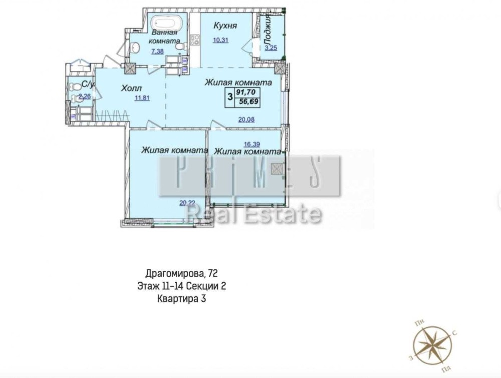 Продажа 3-комнатной квартиры без ремонта площадью 92 м² в ЖК «Новопечерские Липки», ул. Андрея Верхогляда (Драгомирова) 19б