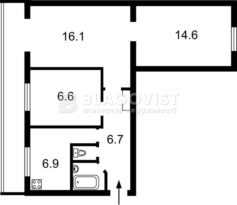 • 3-, 3-й поверх, площа: 60,0\37,3\6,9; Ціна: 65 000 USD