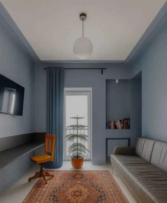 Квартира складається з трьох кімнат (вітальня, спальня, кабінет/спальня), кухні, ванної кімнати, санвузла та просторого балкону. Висота стелі 3,2 м.