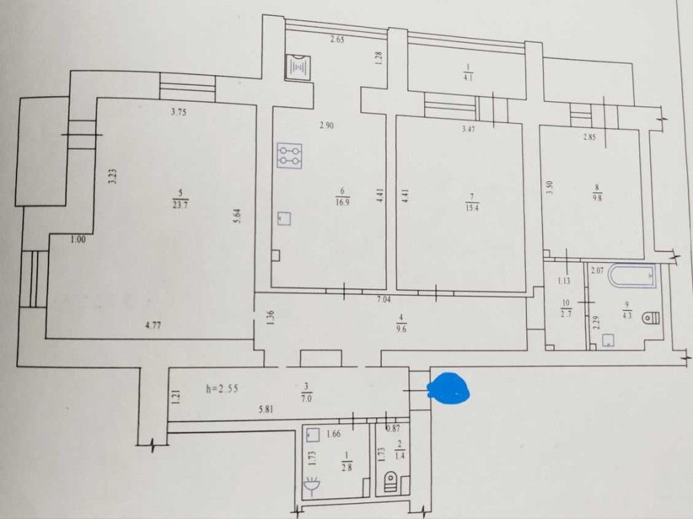 Загальна площа квартири 100 м2, кухня 17 м2