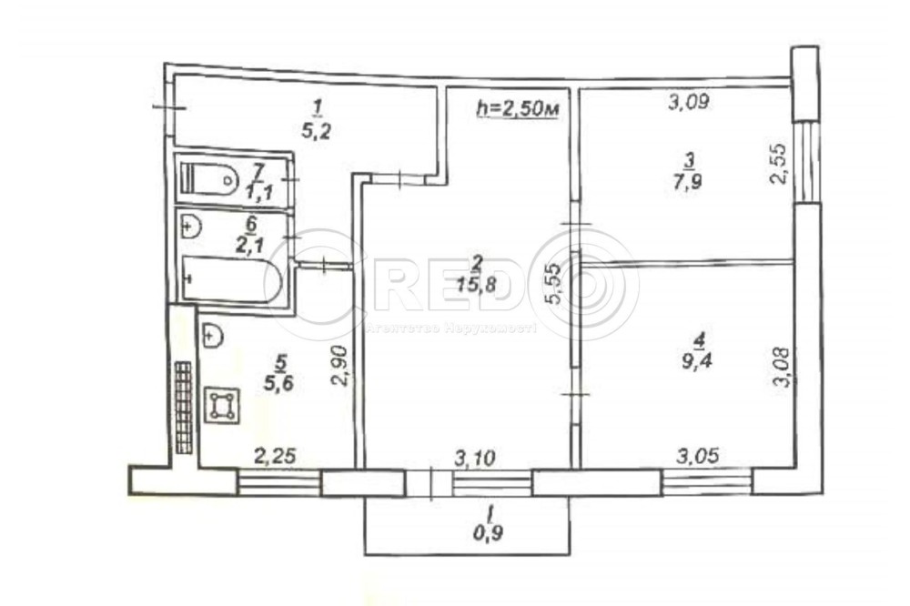 • Площа кухні 5.6 м2