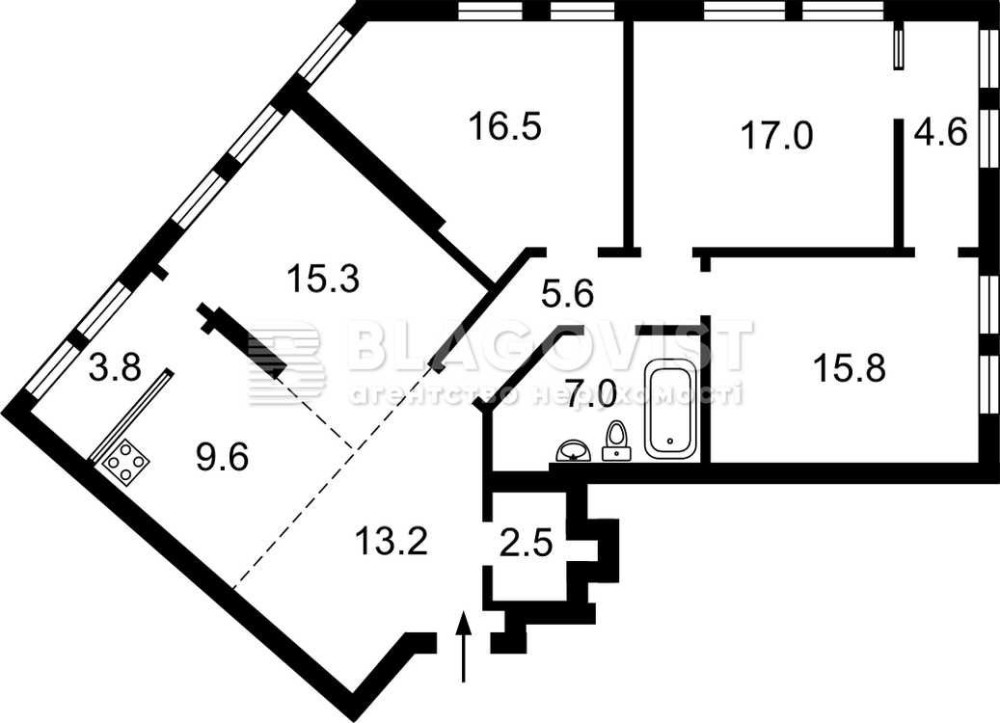 • Площа кухні 9.6 м2