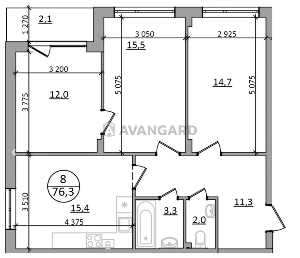 Площа: 76.3 м2