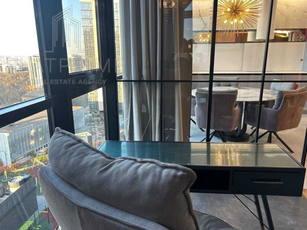 Окремий кабінет з марокканським вайбом і панорамними вікнами – можна працювати та надихатися краєвидом міста.