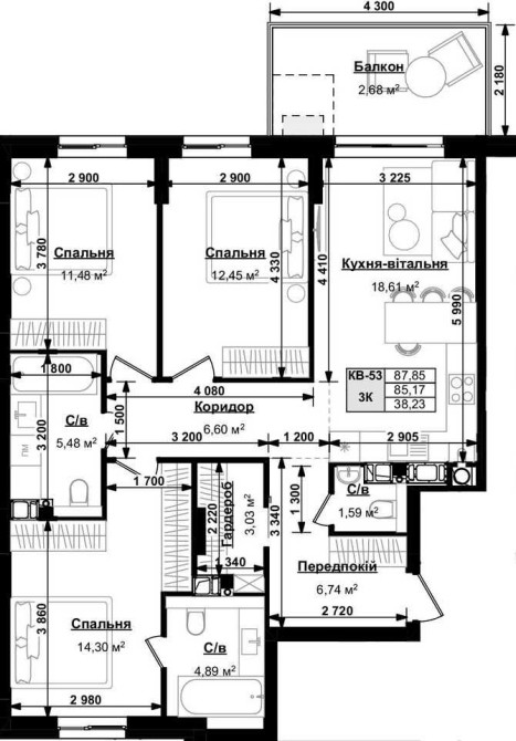• Загальна площа 87.85 м2