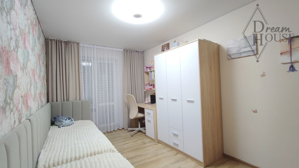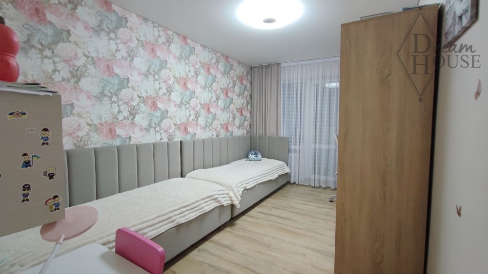 Загальна площа оселі 71,3 кв.м., проведено перепланування: простору вітальню об’єднано з кухнею та розмежовано обідньою зоною. Дві окремі спальні кімнати та суміжний санвузол. Оновлено усі комунікації у квартирі. Вікна та балконні блоки металопластикові, встановлено броньовані вхідні двері, оновлено мжк двері. Наявні лічильники на газ, воду та світло.