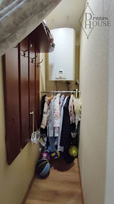 Над квартирою є технічний поверх, дах перекрито та засмолено. У квартирі зроблено класичні матові натяжні стелі. Підлогу встелено ламінатом. Санвузол суміжний, повністю обкладений плиткою та оснащений електричним підігрівом підлоги.