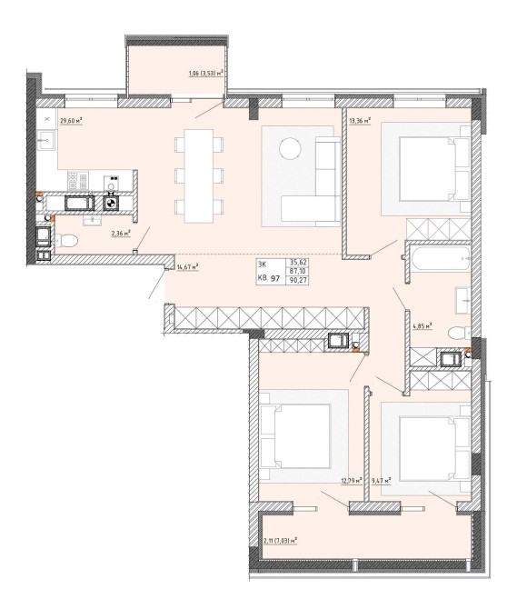• Трикімнатна