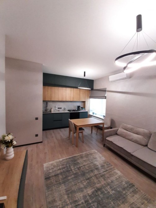 Площа квартири 103 м2 та є велика кухня- вітальня.