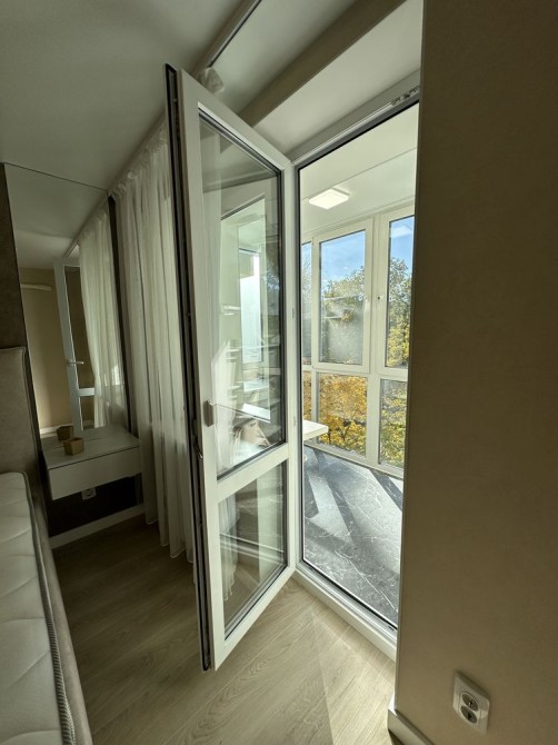 Квартира з новим дизайнерським євроремонтом, двостороння, не кутова, має два панорамні балкони.